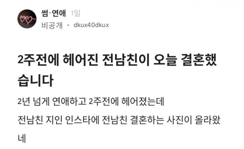 2주전에 헤ㅇ진 전 남친이 오늘 결혼 했습니다