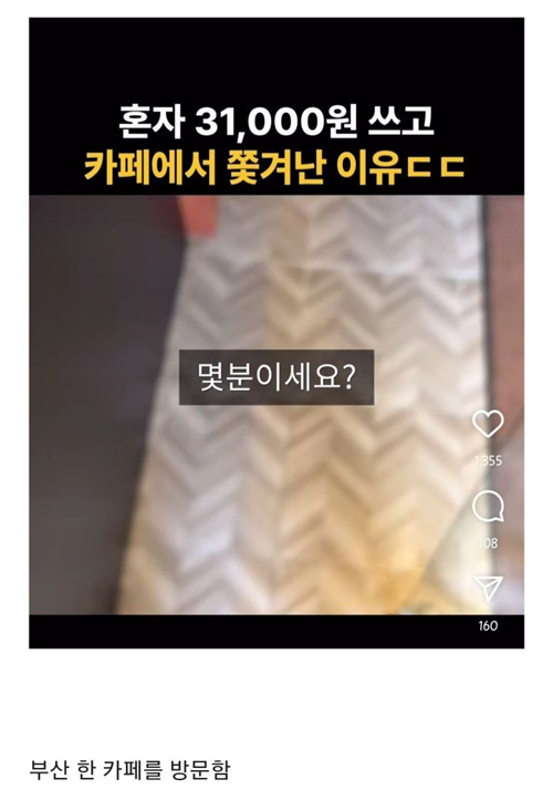 혼자 31000ㅇ 쓰고 카페에서 쫓겨난 이유