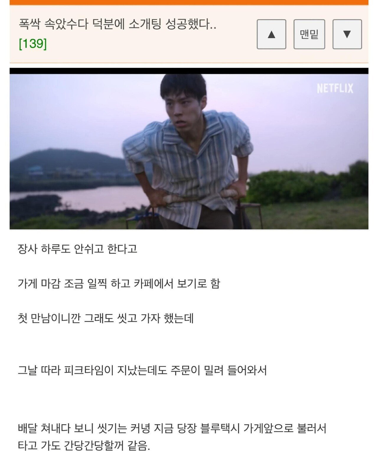 폭싹 속았수다 덕분에 소개팅 성공한 남자