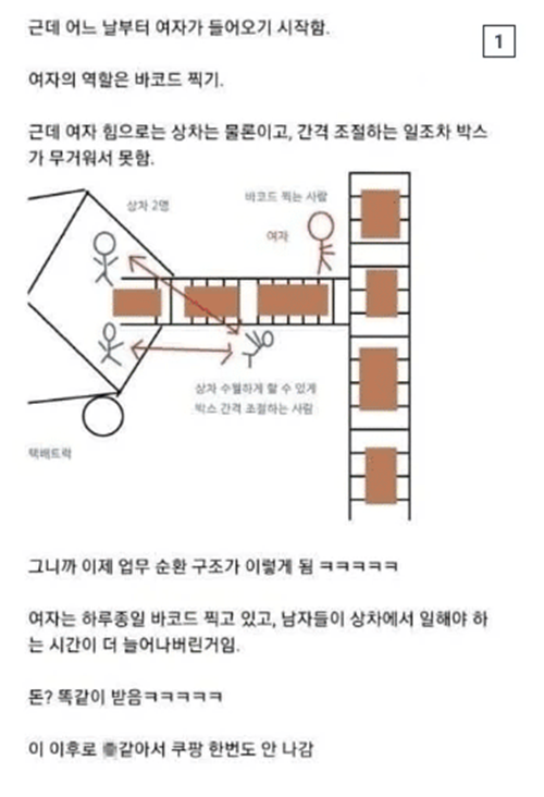 남녀성비 1:9 동탄 쿠팡센터 근황