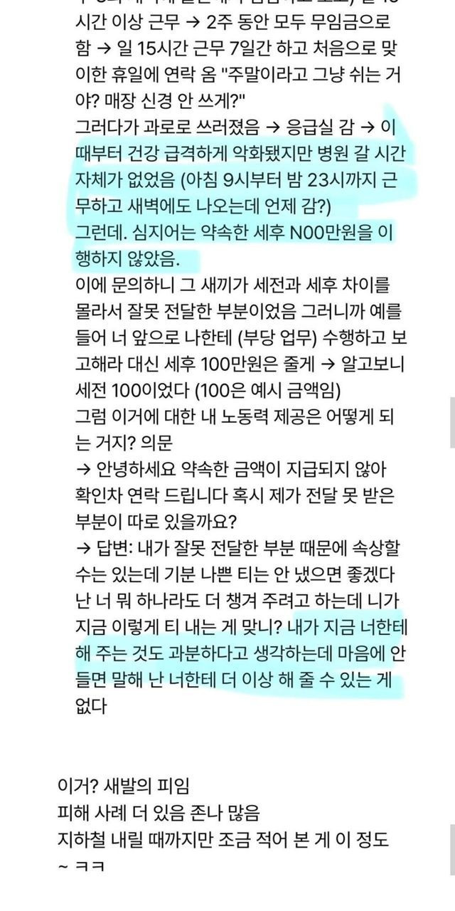 직장 내 괴ㄹ힘으로 합의금 받은 사람