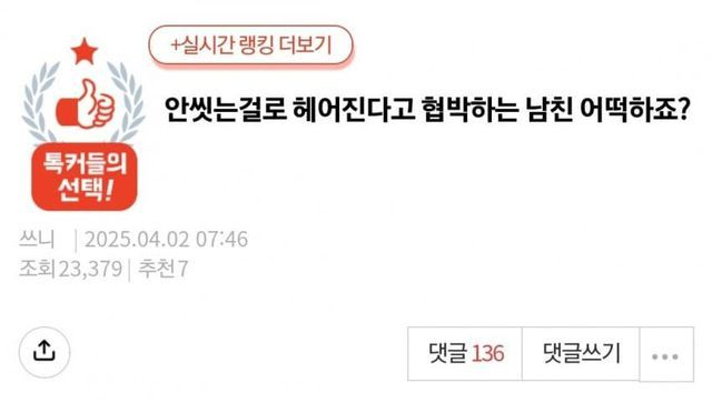안씻는걸로 헤ㅇ진다고 ㅎ박하는 남친 어떡하죠?