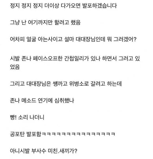 대대장한테 공포ㅌ 쏜 썰