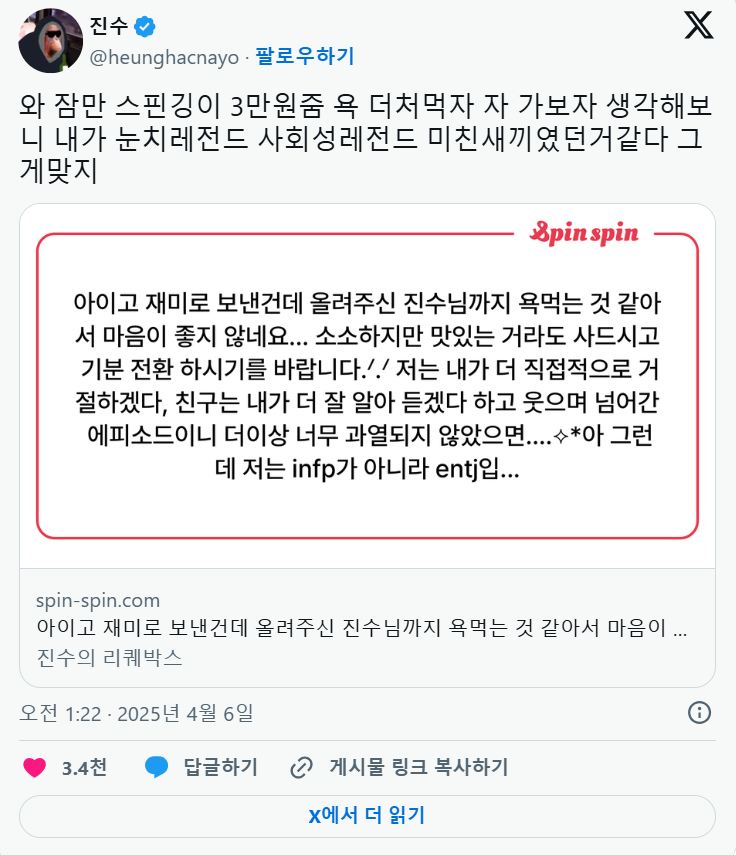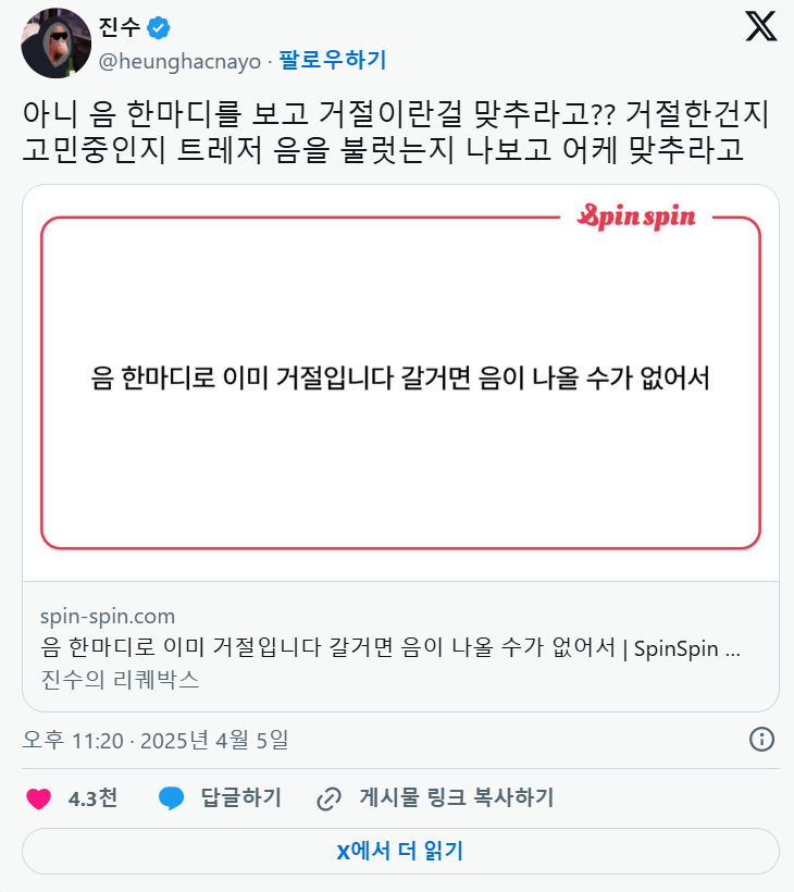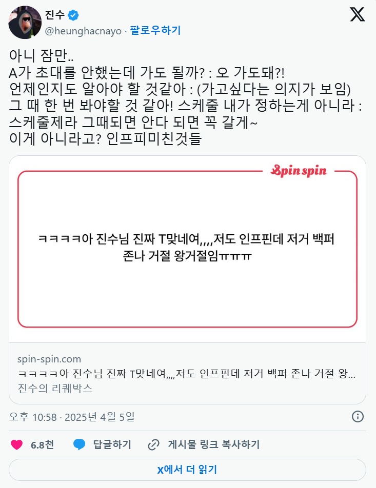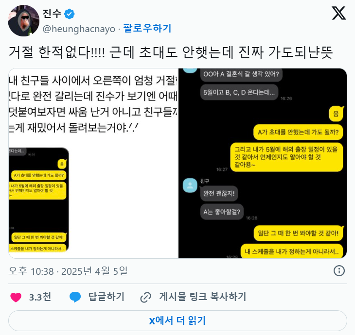 진수를 혼란스럽게 만든 카톡대화