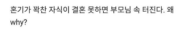 혼기가 꽉찬 자식이 결혼 못하면 부모님의 속이 터지는 이유
