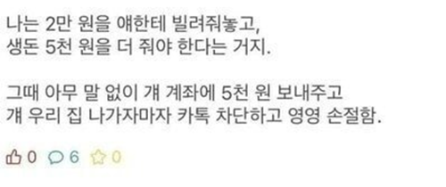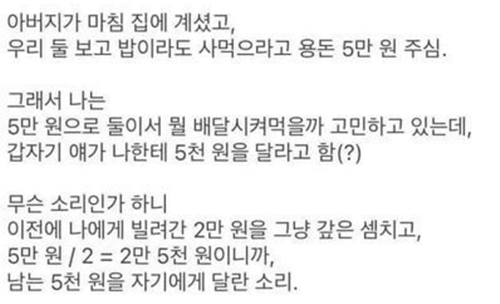 2만ㅇ 빌렸는데 5천ㅇ 달라는 친구