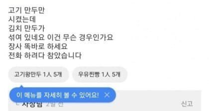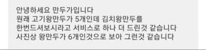 고기 만두만 시켰는데 김치 만두가 섞여 있네요