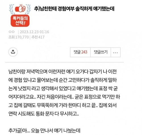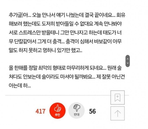 이별통보의 이유가 이해가 안된다는 여대생 누나