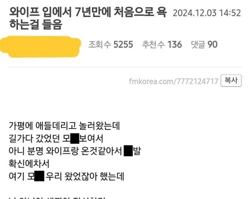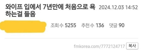 와이프 입에서 7년만에 처음으로 욕하는걸 들음