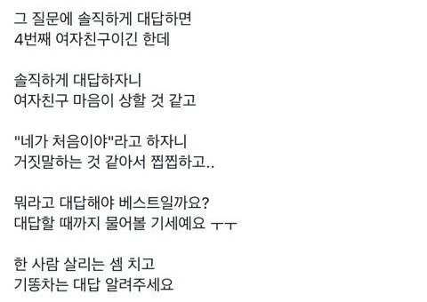 “오빠 내가 몇번째 여자친구야?” 대처법