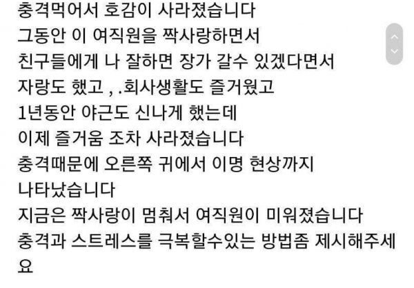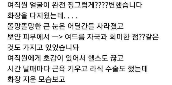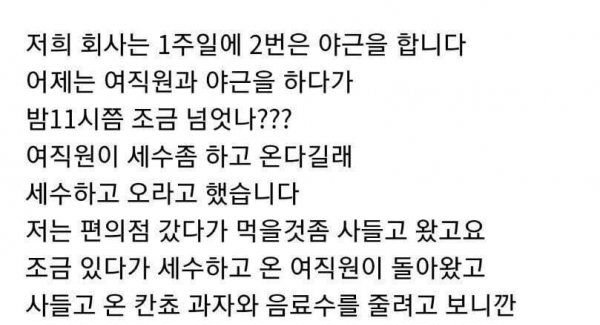 야근하는데 쌩얼 보여준 여직원