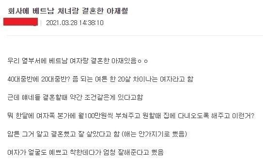 베ㅌ남 처ㄴ와 결혼한 회사 아재썰