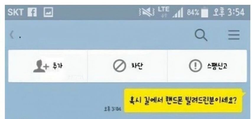 길에서 휴대폰 빌려줬더니 온 카톡