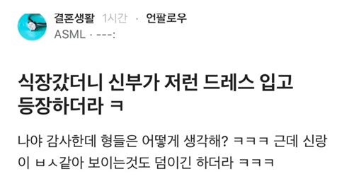 식장갔더니 신부가 저런 드레스 입고 등장하더라