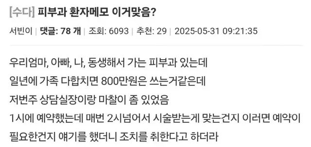 자주가는 피부과인데 환자 정보 메모에 이거맞음?