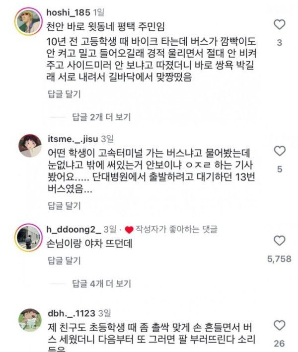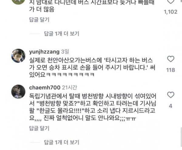 어질한 천안버스 경험담들
