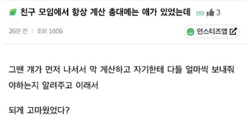 친구 모임에서 항상 계산 총대메는 애가 있었는데
