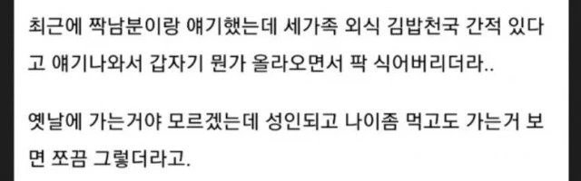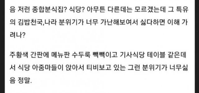 김밥천국에서 밥 먹는 사람들 보면 불쌍하다는 사람