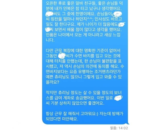 수면바지 입는 알바에게 한마디 한 점장