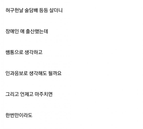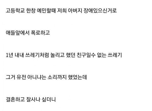 ㅈ애있는 아버지를 욕했던 동창이 ㅈ애아 출산