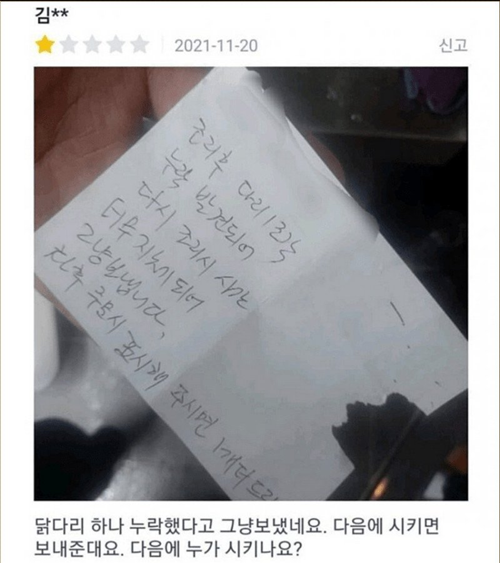 닭다리 누락시킨 치킨집의 대처