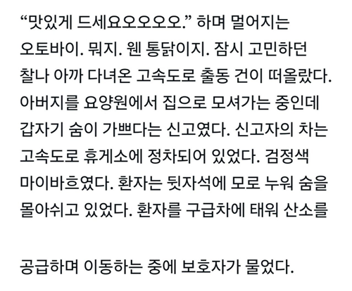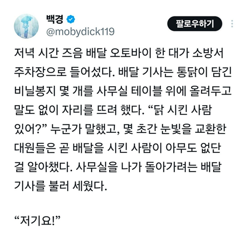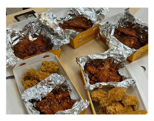 저녁시간 소방서에 통닭이 배달되었다
