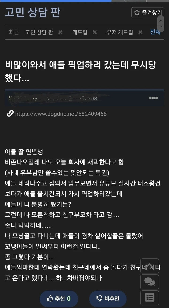 비 많이와서 애들 픽업하러 갔는데…