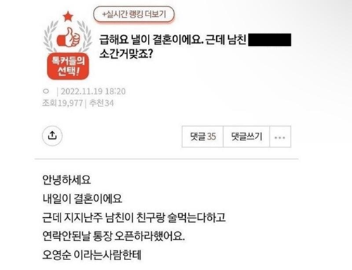 낼 결혼식인데 남친 ㅇㅅ 간거같아요