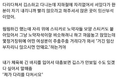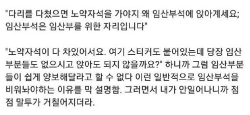 다리다쳐서 임산부석 앉았는데
