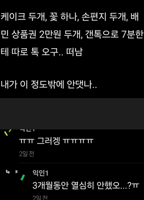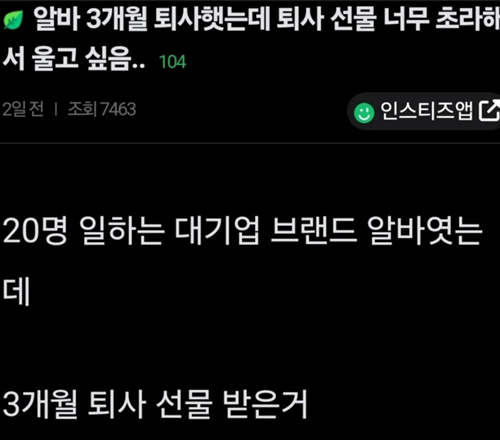 알바 3개월 퇴사했는데 퇴사 선물 너무 초라해서 울고싶음..