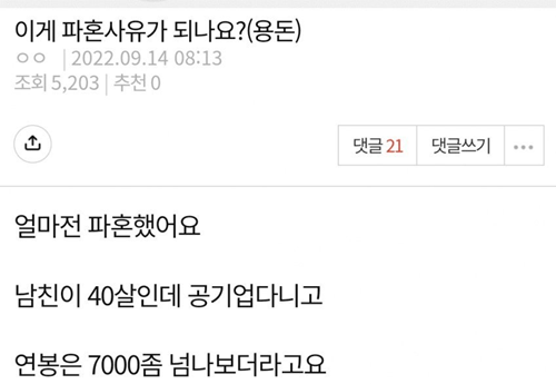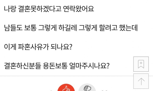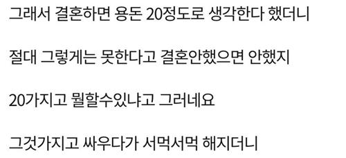 결혼 후 용돈 20이라고 하니 결혼못하겠다는 남친