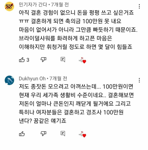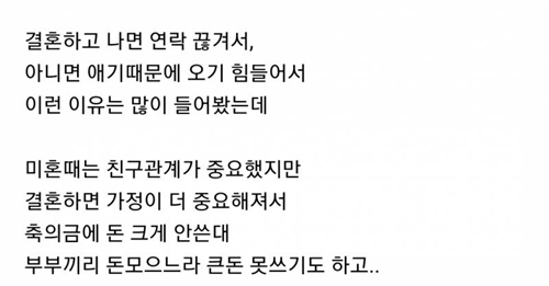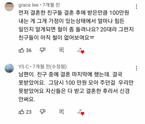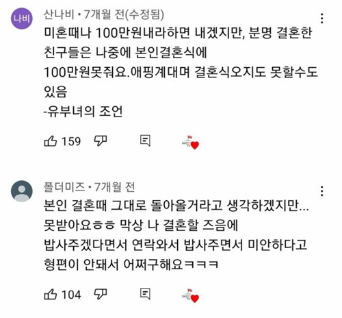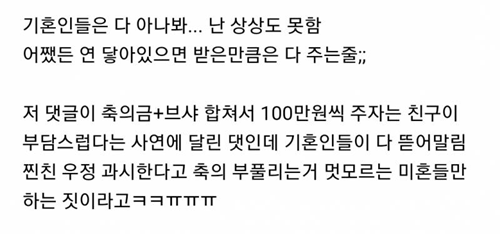 현재 서로 충격받고있는 축의금 준만큼 못돌려받는 이유