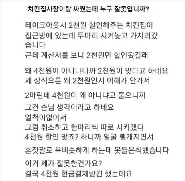 치킨집 방문 포장 논란 08/25/2025 이 포스팅은 쿠팡 파트너스 활동의 일환으로, 이에 따른 일정액의 수수료를 제공받습니다. 당겨주세요! 당겨주세요! 광고 방문하고 계속 읽기 원치 않을 경우 뒤로가기를 눌러주세요 X