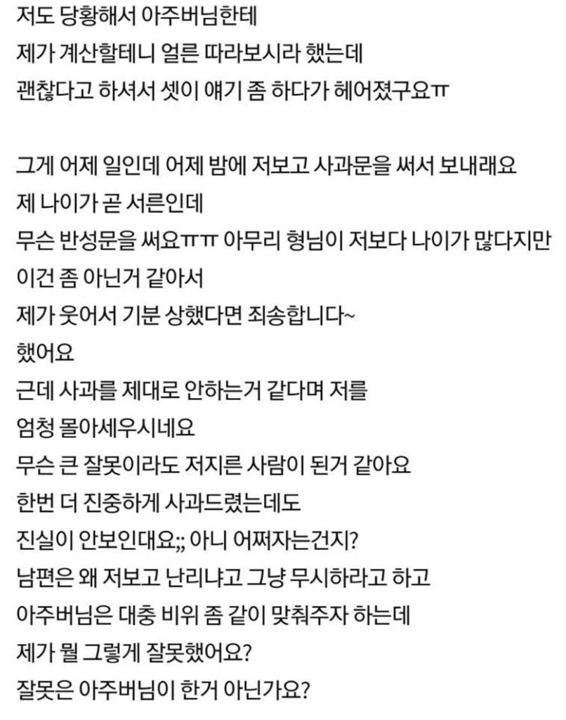 형님이 곧 서른인 저보고 사과문을 쓰래요… 08/27/2025 이 포스팅은 쿠팡 파트너스 활동의 일환으로, 이에 따른 일정액의 수수료를 제공받습니다. 당겨주세요! 당겨주세요! 광고 방문하고 계속 읽기 원치 않을 경우 뒤로가기를 눌러주세요 X