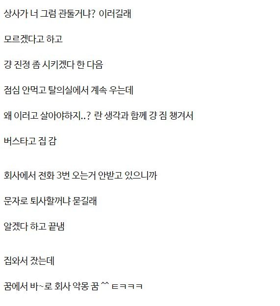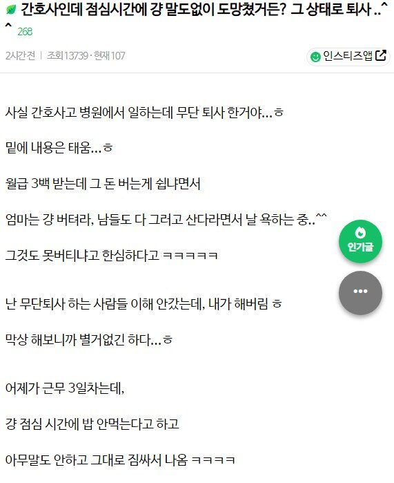근무 3일차 점심시간에 그대로 무단퇴사한 간호사 08/28/2025 이 포스팅은 쿠팡 파트너스 활동의 일환으로, 이에 따른 일정액의 수수료를 제공받습니다. 당겨주세요! 당겨주세요! 광고 방문하고 계속 읽기 원치 않을 경우 뒤로가기를 눌러주세요 X