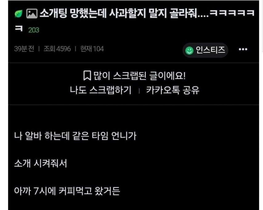 소개팅 나갔다가 큰 실수한 여자 09/02/2025 이 포스팅은 쿠팡 파트너스 활동의 일환으로, 이에 따른 일정액의 수수료를 제공받습니다. 당겨주세요! 당겨주세요! 광고 방문하고 계속 읽기 원치 않을 경우 뒤로가기를 눌러주세요 X