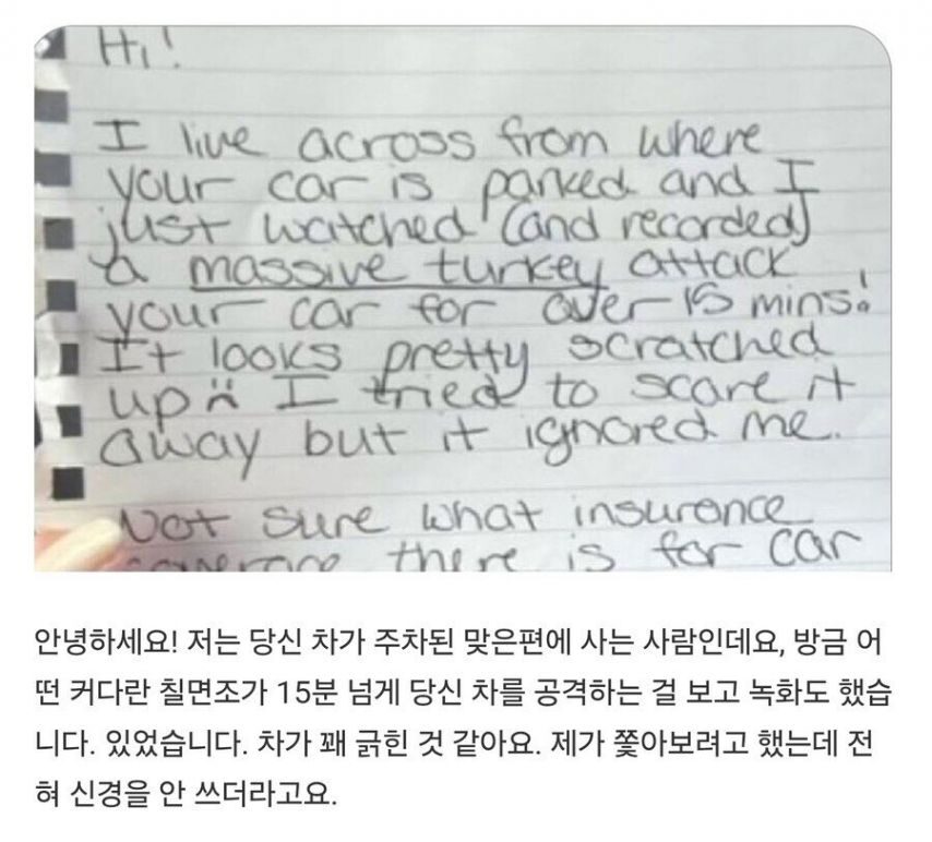 주차된 차가 긁혔는데 남겨진 쪽지 09/04/2025 이 포스팅은 쿠팡 파트너스 활동의 일환으로, 이에 따른 일정액의 수수료를 제공받습니다. 당겨주세요! 당겨주세요! 광고 방문하고 계속 읽기 원치 않을 경우 뒤로가기를 눌러주세요 X