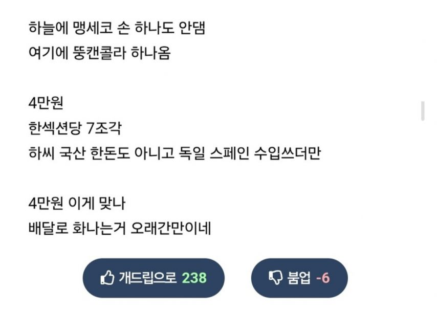 4만원짜리 프차 쪽갈비 수준 09/12/2025 이 포스팅은 쿠팡 파트너스 활동의 일환으로, 이에 따른 일정액의 수수료를 제공받습니다. 당겨주세요! 당겨주세요! 광고 방문하고 계속 읽기 원치 않을 경우 뒤로가기를 눌러주세요 X