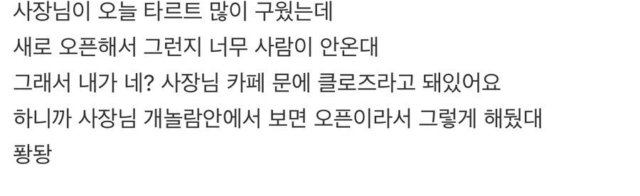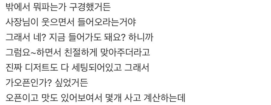 손님이 없던 새로생긴 디저트 가게 09/24/2025 이 포스팅은 쿠팡 파트너스 활동의 일환으로, 이에 따른 일정액의 수수료를 제공받습니다. 당겨주세요! 당겨주세요! 광고 방문하고 계속 읽기 원치 않을 경우 뒤로가기를 눌러주세요 X