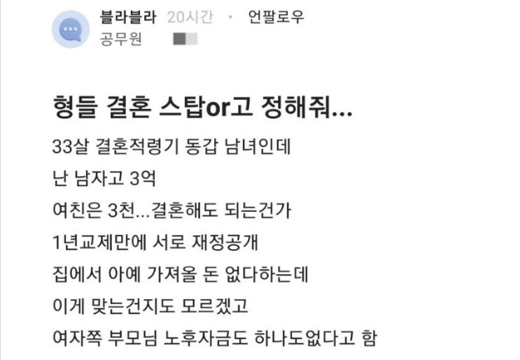 블라)결혼 스탑 or 고 정해 달라는 공무원