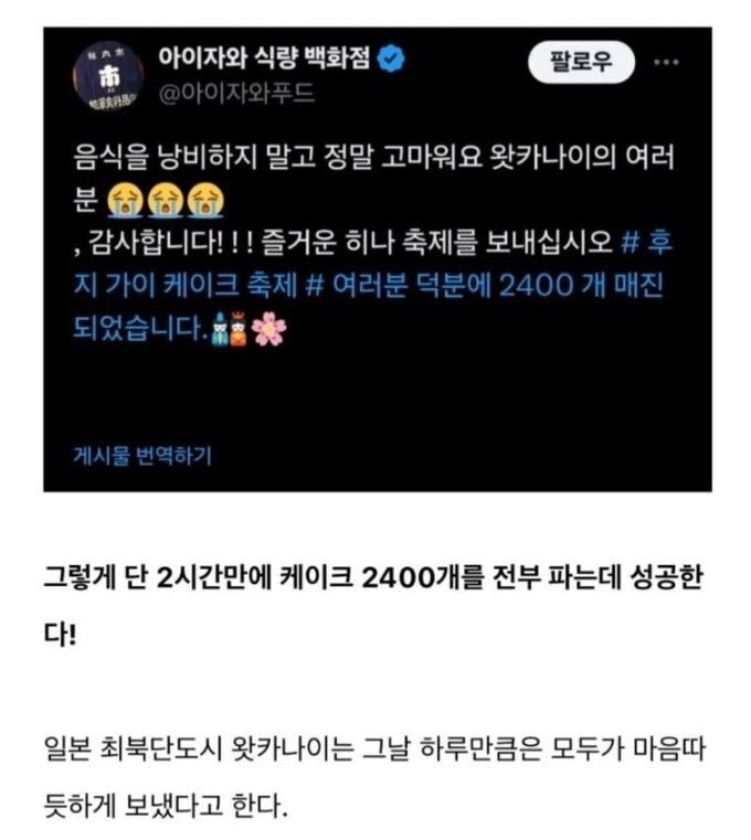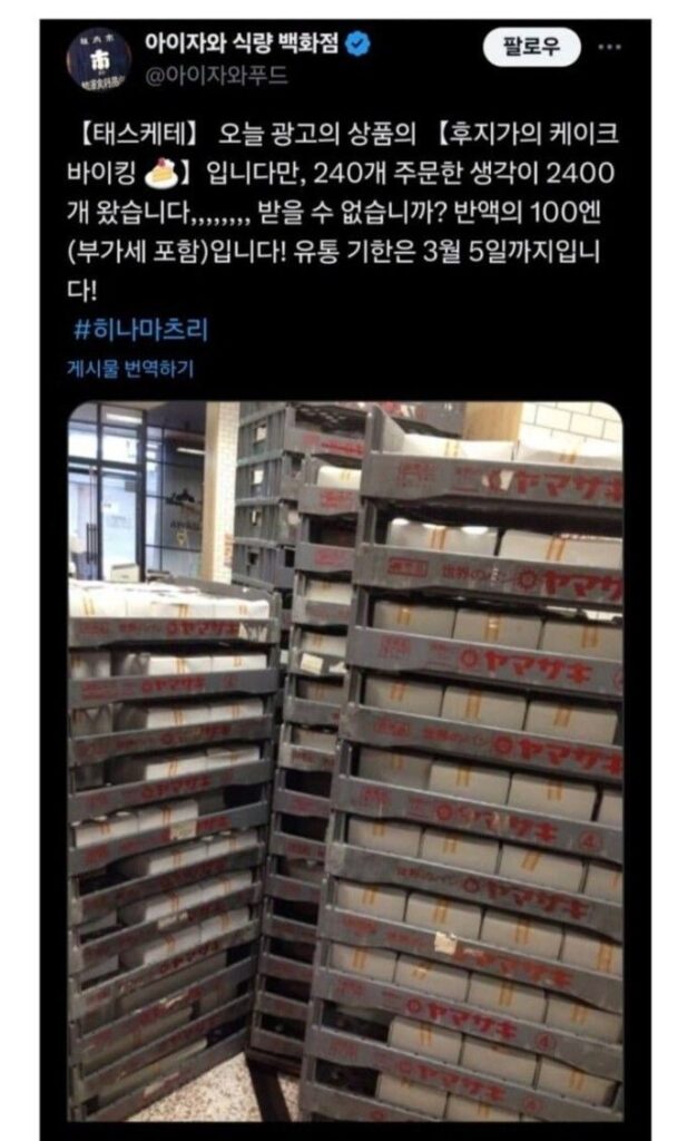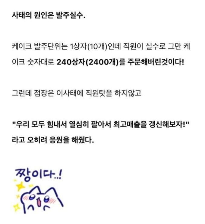 실수로 케이크 2400개 주문한 편의점