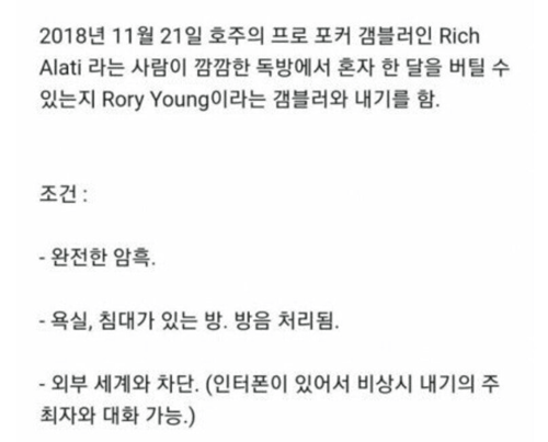 독방에서 30일 버티면 1억의 현실