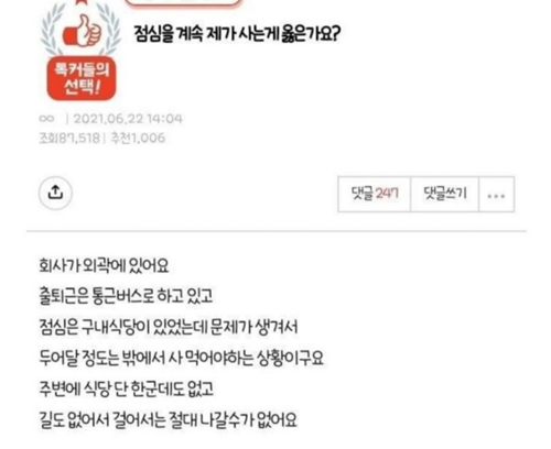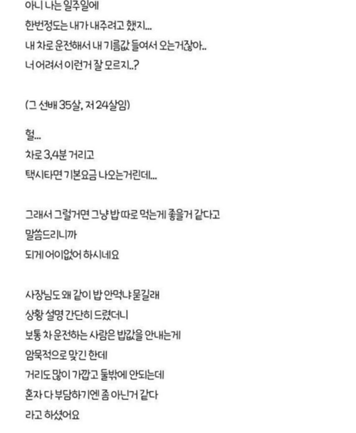 직장인 카풀 식비논란