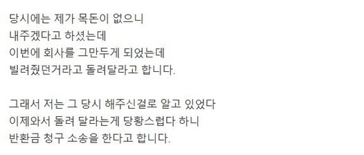 퇴사한다니까 사장님이 대여금 반환소송을 한다네요