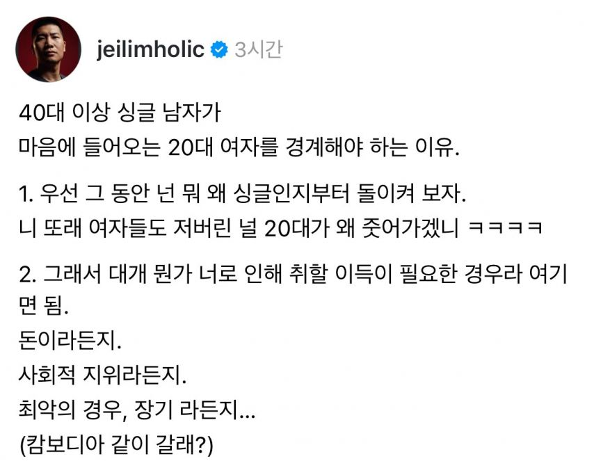 40대 남자가 20대 여자를 경계해야하는 이유