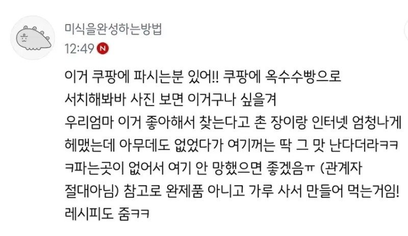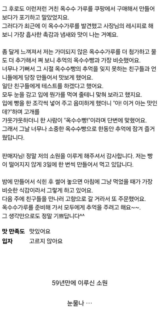 레전드 쿠팡 리뷰 (옥수수빵 가루)