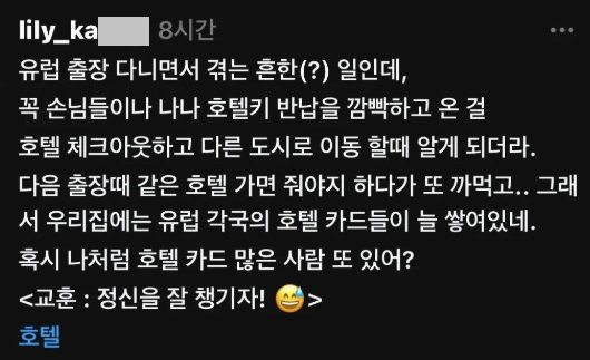 호텔키 반납을 깜빡한 사람