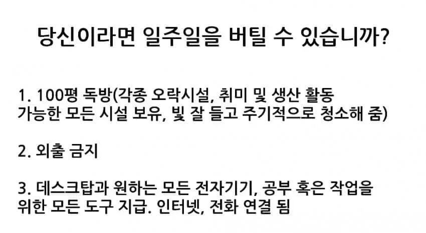 현재 SNS에서 논란중인 일주일 버티기 조건