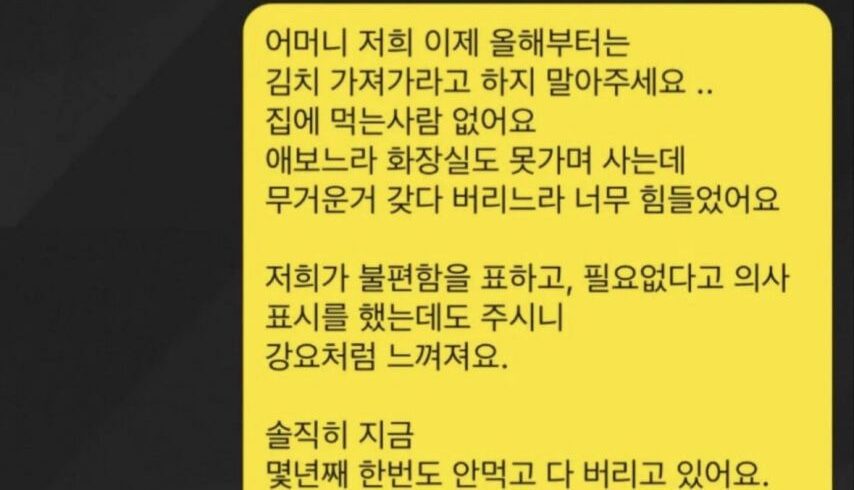 참다참다못해 시어머니한테 장문의 톡을 날린 며느리
