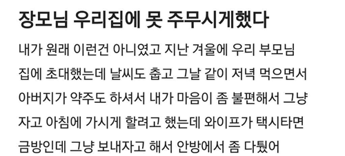 장모님 우리집에서 못 주무시게했다